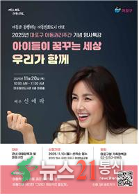 마포구(구청장 박강수)는 아동권리주간을 기념하여 11월 20일 오전 10시 마포중앙도서관 마중홀에서 배우 신애라 초청 명사 특강을 개최한다. 이번 행사는 아동친화도시 마포의 비전을 실현하고 아동 권리의 중요성을 널리 알리기 위해 마련됐다. 이날 강연은 배우이자 아동권리보장원 홍보대사로 활동 중인 배우 신애라가 맡아 &lsqu...
