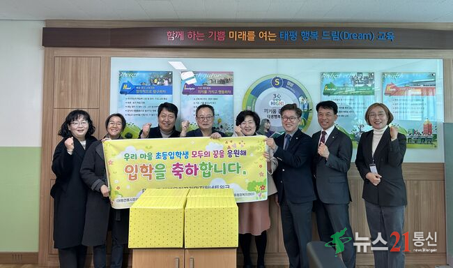 대전 중구 태평1동(동장 박상롱)은 지난 13일 관내 3개 초등학교(유평초, 원평초, 태평초) 신입생을 위한 입학 축하 선물을 전달했다고 밝혔다.이번 행사는 그동안 태평1동에서 추진해 온 ‘행복육아꾸러미지원사업’의 인연을 이어가기 위한 나눔 활동으로, 마을 미싱봉사단에서 직접 만든 에코백을 준비해 새로운 출발을 응원하는 의.