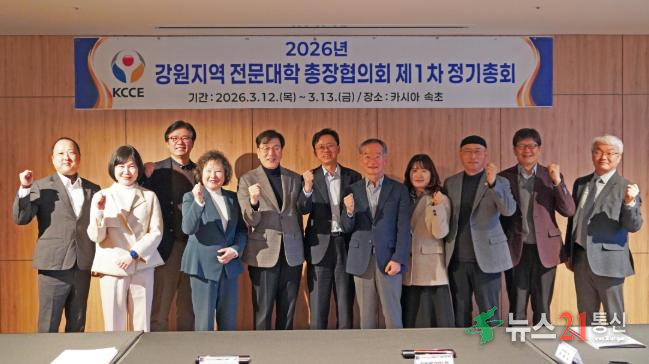 강원특별자치도 전문대학 총장협의회(회장 최종균 강원도립대학교 총장)는 3월 12일부터 13일까지 양일간 속초 카시아호텔앤리조트에서 ‘2026학년도 제1차 정기총회’를 개최하고, 지역사회와 대학의 상생발전 방안을 심도 있게 논의했다.올해 새롭게 출범한 최종균 신임 협의회장(강원도립대학교 총장)의 주재로 열린 이번 회의에는 ...