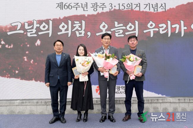 [뉴스21통신/장병기] 광주광역시는 15일 동구 금남로공원 광장에서 ‘제66주년 광주3‧15의거 기념식’을 거행했다.이날 행사는 1960년 부정선거에 맞서 민주주의를 지켜낸 광주시민들의 숭고한 뜻을 기리고 민주정신을 계승하기 위해 마련했다.기념식에는 강기정 광주시장과 이정재 광주3‧15기념사업회 회장을 비롯해 3‧15의거 단체, 4...