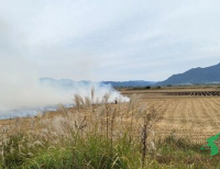 해남 간척지에서 논두렁 태우기를 하고 있는 농부