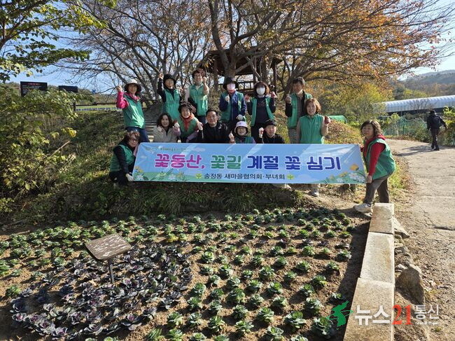 [뉴스21 통신=최병호 ]*사진출처-울산북구청북구 송정동 새마을부녀회는 20일 화동못 수변공원 입구와 공영주차장 일원에 겨울꽃을 심고 환경정비활동을 했다.