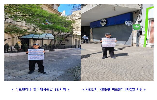 이후 국민은행본사와 대통령실앞에서 1인시위를 하였고 국민은행본사에서 2차 미팅 및 진술시간을 통하여(2025년 9월19일, 국민은행측 3명 참석, 진상조사추진위원장 지인인 사건당시 상황을 잘 아는 전.금감원국장 등 2명 참석) 약 1시간동안 제출한 자료등을 기준으로 본 사건의 핵심내용을 진술하고 녹음자료, 2차요구사항, 공식진상조사착수결정의 당위성 등을 제출하였고 2025년 9월24일, 다시 아르헨티나로 돌아가 아르헨티나 대사관 및 당시 국민은행지점 위치에서 그동안 수차례 자살까지 생각 (피해자중 여러명은 이미 자살한 상태)하고 파탄난 가정과 고통의 시간들 속에서 지금까지 진상조사와 명예회복, 정당한 손해배상을 요구해온 사필귀정의 사명감으로 피눈물을 삼키며 1인시위를 하였으며 지금까지 국민은행측의 공식적인 답변과 한국국민주권정부 및 금감원의 마땅한 적극행정을 지속적으로 요구하고 있다.