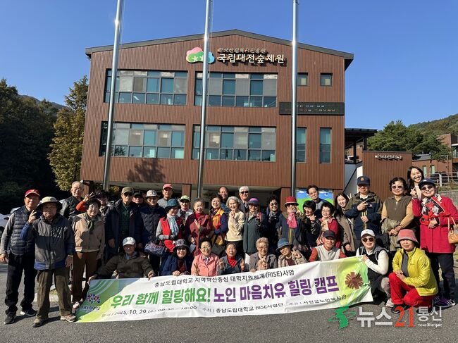 라이즈 힐링캠프 (사진=충남도 제공)충남도립대학교 라이즈(RISE)사업단은 지난 29일 서천군노인복지관과 연계하여 ‘노인 마음 치유 힐링캠프’를 개최했다.