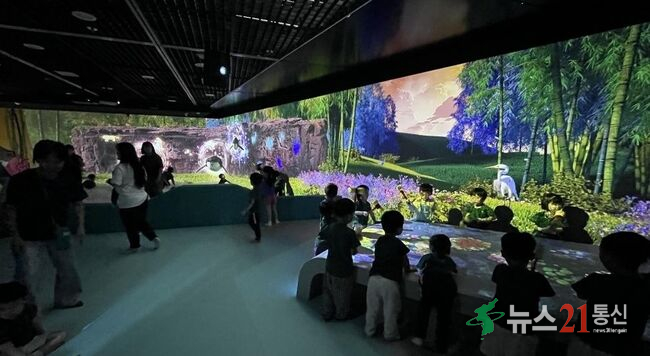 [뉴스21 통신=최세영 ] ▲ 사진제공=울주군청울주군 태화강생태관이 지난달 1일 신규 개장한 미디어아트 전시공간 ‘물빛놀이터’가 큰 인기를 끌면서 한 달 만에 전월 대비 방문객이 2배 가까이 증가했다고 6일 밝혔다.‘물빛놀이터’는 체험형 미디어아트로 구성된 신규 전시공간으로, 태화강생태관 전시동...
