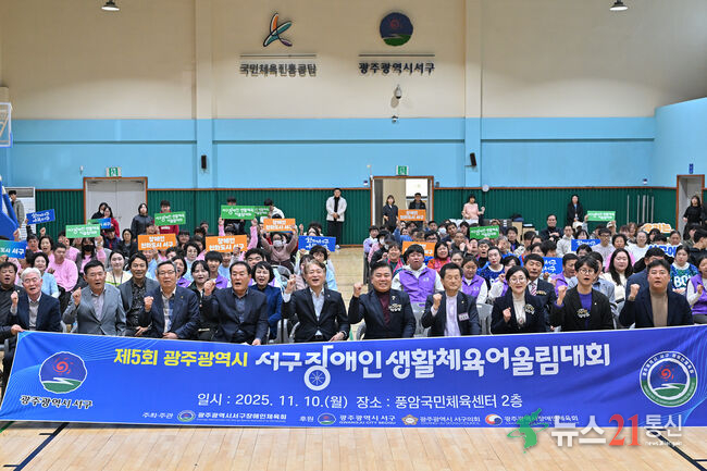 광주 서구는 10일 풍암국민체육센터에서 ‘제5회 광주광역시 서구 장애인생활체육대회’를 개최했다. 이번 대회는 지역 장애인들의 신체 활동 증진과 사회 참여를 확대하기 위해 마련됐으며, 다양한 종목의 경기와 체험 프로그램이 진행됐다.김이강 서구청장은 대회사를 통해 “장애인과 비장애인이 함께하는 스포츠 축제를 통해 ...