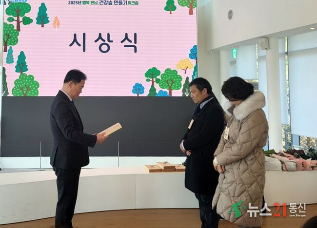 장흥군이 전라남도 ‘숲속의 전남 만들기’ 정책 추진 성과를 인정받아 최근 열린 평가와 공모전에서 연이어 수상했다.지난 12일 해남 산이정원에서 열린 ‘2025년 숲속의 전남 만들기 워크숍’에서 장흥군은 나무심기 평가 우수상을 받았다.이번 평가는 전라남도 산림자원과 주관으로 조성·관리 및 정책참여 등 2개 분야 13.