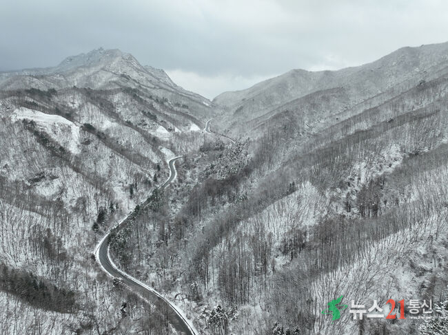 [뉴스21 통신=김희백 사회2부기자] 14일 경남 거창군 북상면 월성리 남덕유산 남령재 자락에 밤사이 내린 눈으로 눈꽃이 활짝 피어 있다.