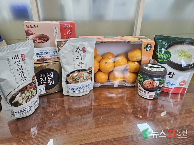 겨울 꾸러미는 ▲귤 ▲배추김치 ▲매생이굴국 ▲대추차 ▲쌍화탕 ▲추어탕·사골국 등으로 구성됐다. 겨울철 한파와 면역력 저하에 대비할 수 있도록 체온 유지와 영양 보충에 도움이 되는 식품과 건강 관리 용품을 중심으로 준비해 대상자들의 건강을 세심하게 챙겼다.