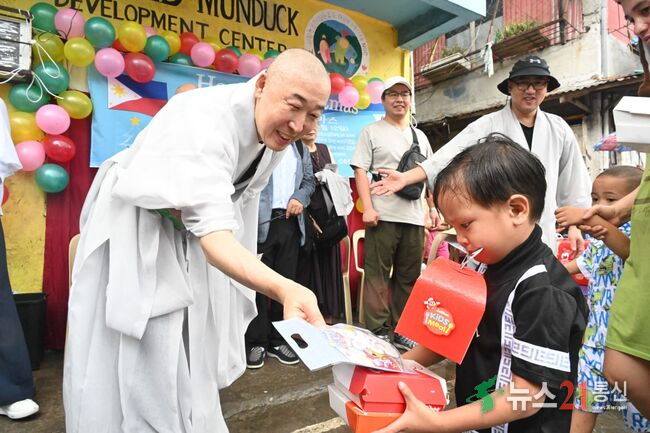 덕문스님, 필리핀 빈민가 아이들에게 전한 자비의 성탄…웃음으로 채운 크리스마스
