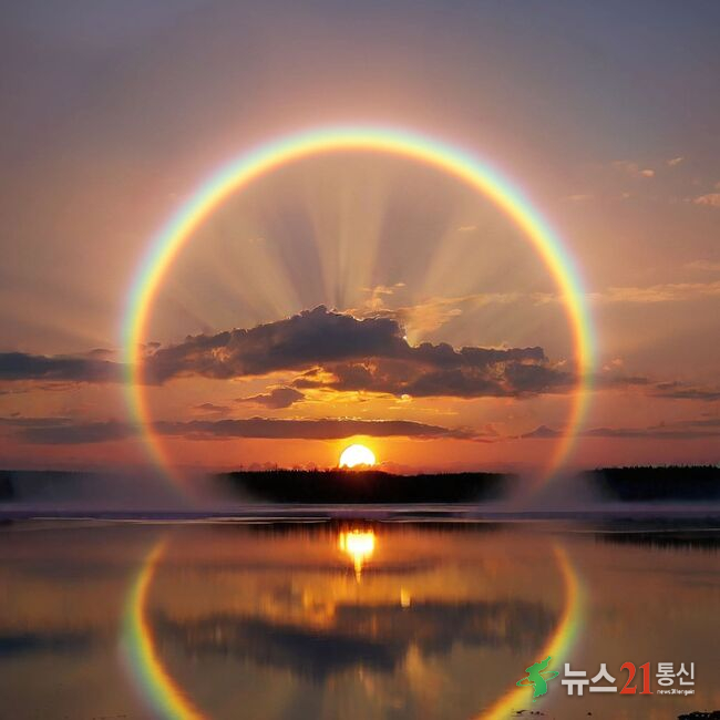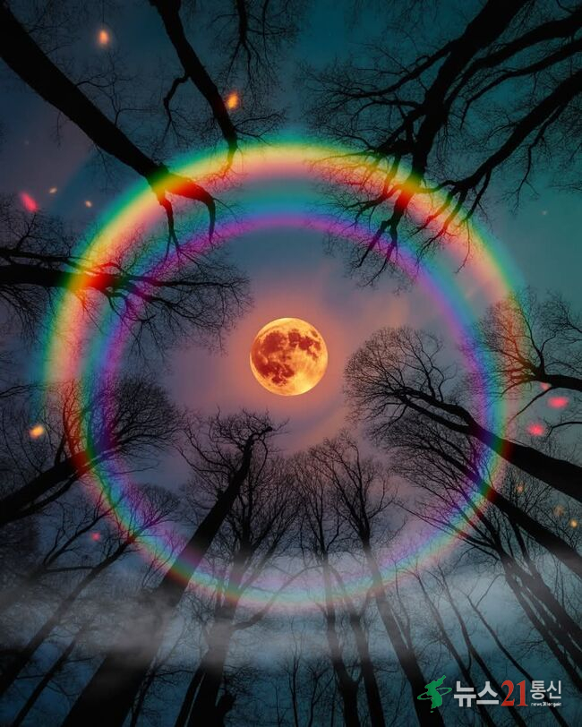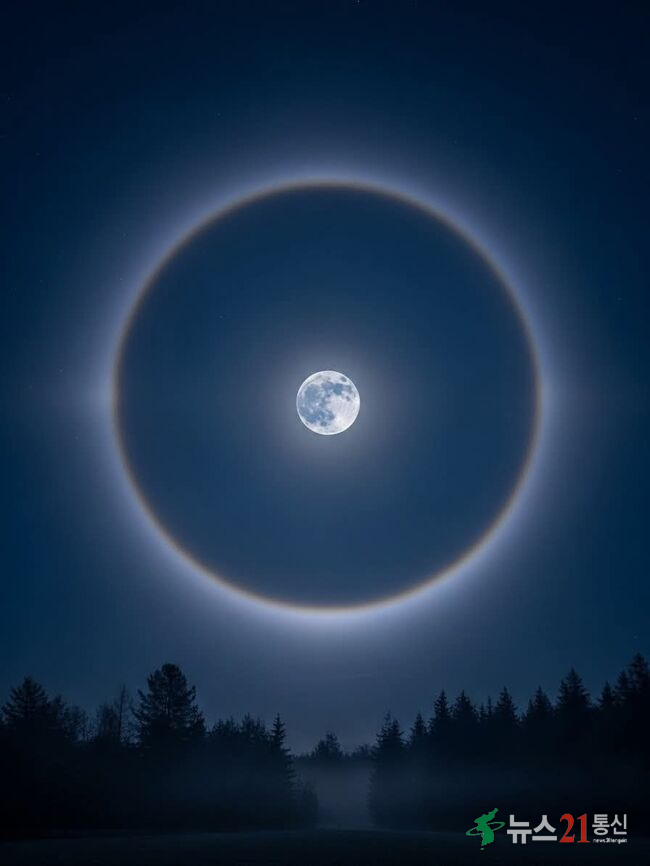 달무리는 달 주위에 둥근 고리처럼 나타나는 광학 현상이다. 대기 상층의 얇은 구름 속에 있는 얼음 결정이 달빛을 굴절시키며 생긴다.