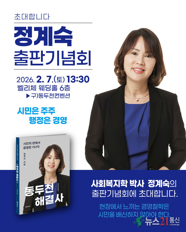 [동두천=서민철 기자]"정치는 사람의 삶을 따뜻하게 만드는 일입니다. 저 정계숙은 권한을 누리는 시장이 아니라, 책임을 다하는 '전문경영인(CEO)'으로서 시민 여러분께 성과를 배당해 드리겠습니다." 6월 지방선거에서 동두천시장직에 도전하는 정계숙 전 동두천시의원(사회복지학 박사)이 지난 7일 오후 동두천 벨리체 웨딩홀...