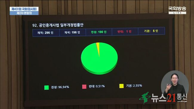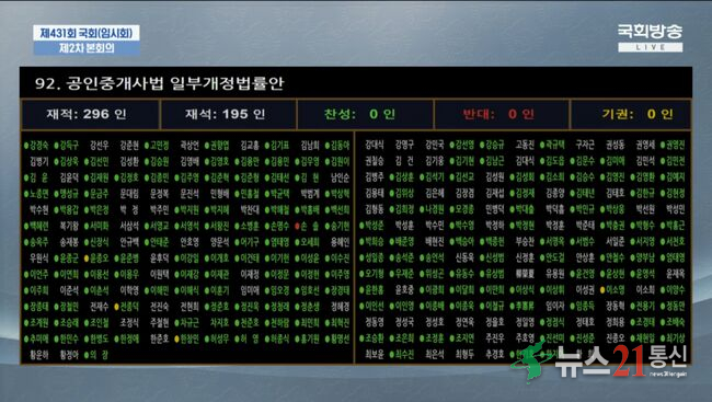한국공인중개사협회를 법정단체로 전환하는 내용을 담은 「공인중개사법 일부개정법률안」이 29일 오후 4시 27분, 제431회 국회(임시회) 제2차 본회의를 통과했다.