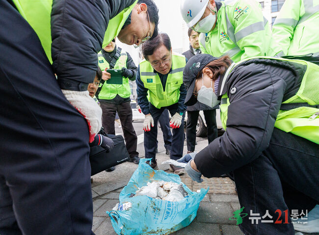 서울 강서구(구청장 진교훈)가 도시 미관을 저해하고 주민 불편의 원인인 ‘쓰레기 무단투기 근절’을 위해 강도 높은 대응에 나섰다. 진교훈 강서구청장은 지난 5일(목) 오후 5시 까치산역 일대 무단투기 상습 지역을 찾아 쓰레기봉투를 뜯어 내용물을 확인하는 파봉단속을 실시했다. 강서구 무단투기단속반이라고 적힌 형광색 ...