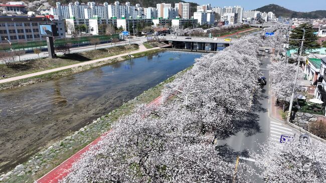 정읍의 벚꽃길은 4킬로미터 구간의 정읍천변길을 따라 울창한 터널을 형성하고있다.