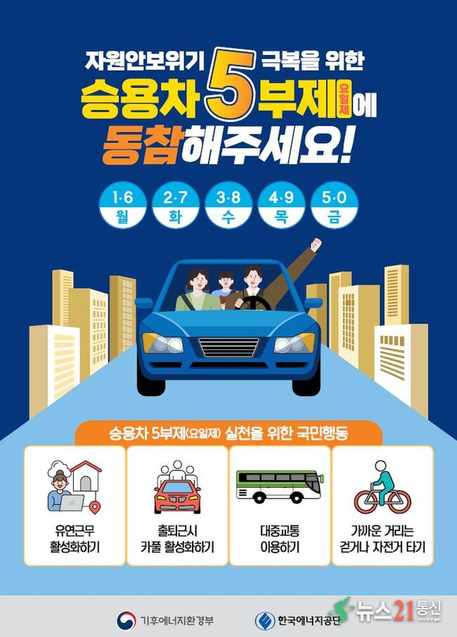 - 자원안보위기 원유 ‘주의’ 단계경보 발령에 따라 25일부터 공공기관 승용차 5부제 시행