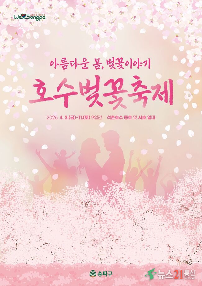 서울 송파구가 오는 4월 3일부터 11일까지 봄꽃 명소인 석촌호수에서 ‘2026 호수벚꽃축제’를 개최한다.