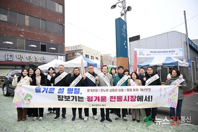 [뉴스21 통신=최병호 ](사진출처=울산북구청)북구는 10일 염포시장에서 설을 맞아 제수용품 구매와 함께 전통시장 이용 캠페인을 벌였다.
