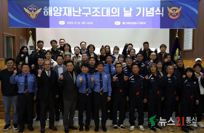 [뉴스21 통신=최세영 ]▲ 사진제공=울산해양경찰서16일 오후 2시, 울산해양경찰서 2층 대강당에서 해양재난구조대의 날 기념식이 개최됐다. 이번 행사는 해양 재난·사고 대응의 최일선에서 활동해 온 해양구조대원들의 노고를 격려하고, 민·관 협력 기반의 해양 안전 체계를 더욱 공고히 하기 위해 마련됐다.이날 기념식에는 안철준...