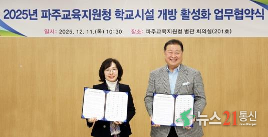 파주시(시장 김경일)가 지난 11일 파주교육지원청, 관내 51개 학교와 ‘학교시설 개방 업무협약’을 체결했다.이번 업무협약은 지역 주민의 생활체육 및 문화활동 공간을 확대하고 교육공동체 협력을 통해 학교시설을 지역 주민에게 개방하기 위함이다.협약식에는 김경일 파주시장, 전선아 파주교육지원청 교육장, 그리고 학교시설 개...