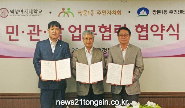 도봉구(구청장 이동진) 쌍문1동주민센터는 7월 29일 덕성여자대학교 행정동 2층 제1회의실에서 쌍문1동주민자치회, 덕성여자대학교와 함께 ‘마을사업 활성화 및 지역사회 발전을 위한 업무협약’을 체결했다.