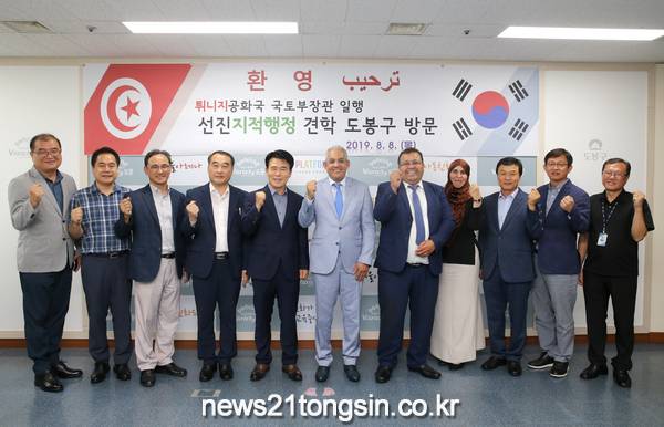 도봉구(구청장 이동진)에 지난 8월 8일 튀니지공화국 국토개발부 장관 누레딘 셀미(Nouredine Seimi)와 지적청장 캐맬 므주기(Kamel Mzoughi), 지적청 국장 아스마 구율(Asma Ghoul) 일행이 부동산종합공부시스템 등을 벤치마킹하기 위해 방문했다.