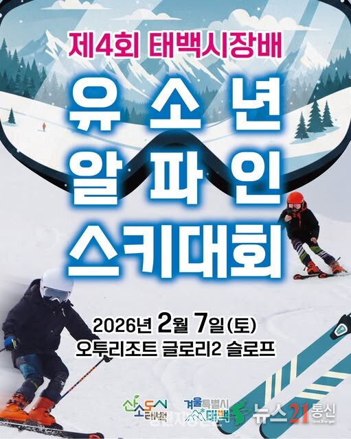 태백시(시장 이상호)는 오는 2월 7일, 오투리조트 글로리2 슬로프에서 ‘제4회 태백시장배 유소년 알파인 스키대회’를 개최한다고 밝혔다.이번 대회는 태백스키협회가 주최·주관하고, 태백시와 태백시의회가 후원하며, 초등부 및 중·고등부 3학년 이하(만 16세 이하) 아마추어 유소년 스키 선수 약 150여 명이 참가할 예정이다...