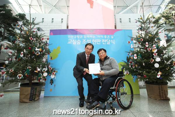 인천공항 제1여객터미널에서 연말을 맞아 여객들의 참여로 미세먼지 취약계층을 돕고 멸종위기 토종묘목 보호에 기여하는 뜻깊은 문화행사가 개최됐다.