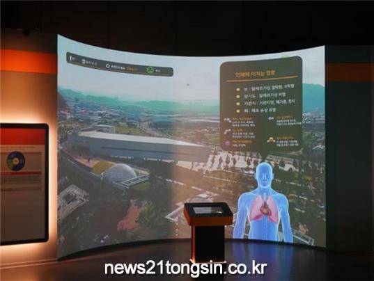 ▲  미세먼지 테마 전시품마지막으로 미세먼지 테마에서는 미세먼지가 발생하는 원인, 인체에 어떠한 영향을 끼치며 미세먼지를 줄이기 위해 우리가 할 수 있는 일 등을 알아볼 수 있다.
