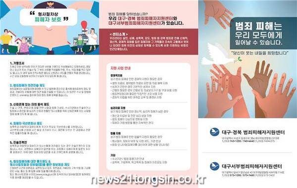 (대구=뉴스21통신) 유재원기자 = 범죄피해자지원센터에서는 강력 범죄로 인해 신체적, 정신적, 경제적 피해를 입은 피해자와 그 가족들이 조속히 고통에서 벗어나 최대한 피해 이전의 상태로 회복될 수 있도록 보호‧지원하는 서비스를 제공 하고 있다.