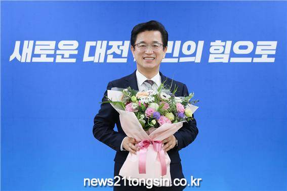 허태정 대전시장은 17일 오전 응접실에서 전국적으로 확산되고 있는 ‘꽃 선물 릴레이’캠페인에 동참했다.