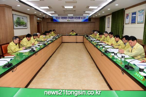 횡성군는 2월 24일(월) 오전 9시 군청 2층 회의실에서 유명환 횡성군수 권한대행 주재하에 실과소장, 읍면장이 참석한 가운데 코로나19 대응 심각단계 격상에 따른 긴급 확대간부회의를 개최하였다.