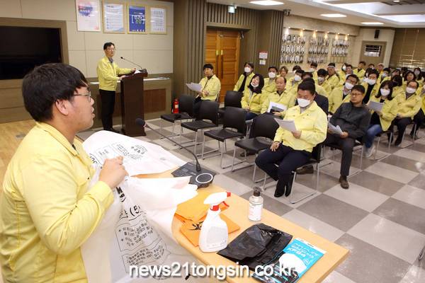 군은 지난 14일부터 자가격리자 전담반을 구성하고, 전 직원을 대상으로 철저한 자가격리자 관리를 위한 사전교육을 실시하고 있다.