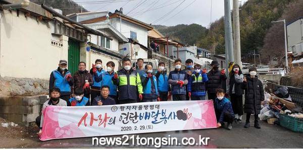 황지자율방범대(대장 김두남)에서는 지난 2월 29일(토) 황지동 관내 저소득 6가구에 각 200장씩 총 1,200장의 연탄을 전달했다.