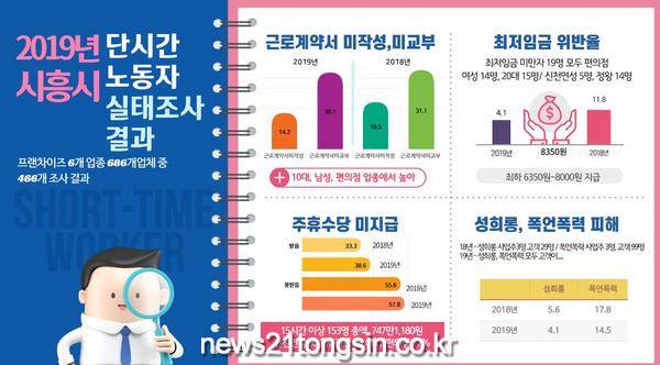 시흥시 노동자지원센터(센터장 박희정, 이하 센터)는 2018년에 이어 2019년에도 시흥시 프랜차이즈 노동자들을 대상으로 실태조사를 진행하고, 그 결과를 발표했다. 센터는 당초 보고회를 진행할 예정이었으나, 코로나19 확산 방지를 위해 취소했다.