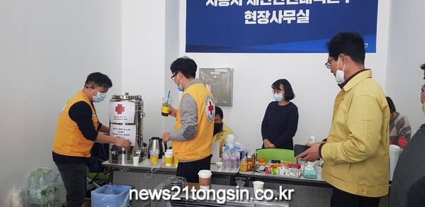 배곧 적십자봉사회에서는 현장사무실을 찾아오는 주민들과 1층 현장사무실 근무자들을 위해 빽다방 커피 300잔을 지원하며 힘든 시기에 조금이나마 도움이 되길 바란다는 말을 전했다.