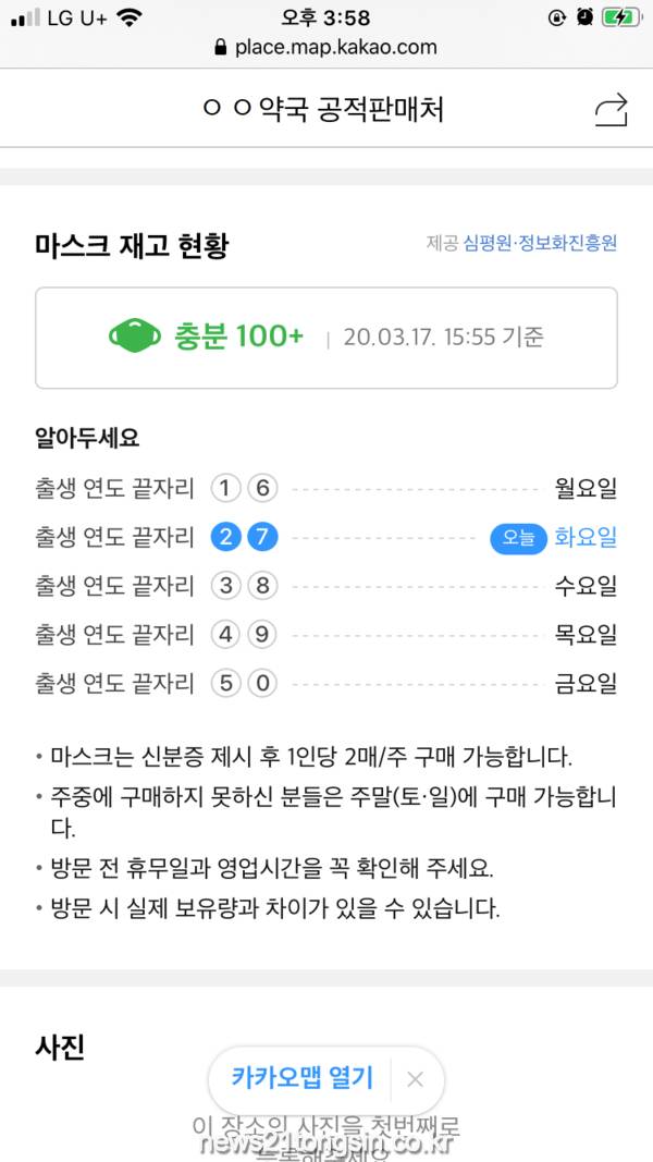 시는 이날부터 관내 공적 마스크의 판매 약국과 운영 시간, 판매시간과 재고현황 등을 실시간으로 알리는 서비스를 시 홈페이지에 구축해 운영을 시작했다.