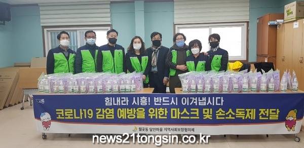 지난 3월 20일 월곶동 달인마을 지역사회보장협의체(위원장 송월봉)는 코로나19 감염 전파차단 및 예방을 위해 관내 취약계층에게 마스크 500매와 손소독제 100개를 전달했다.