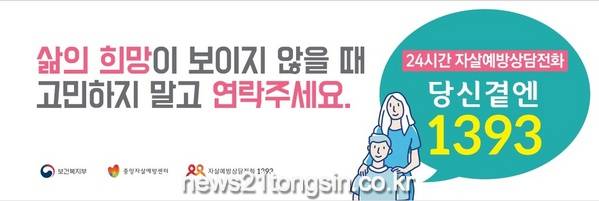 ※ 우울감 등 말하기 어려운 고민이 있거나 주변에 이런 어려움을 겪는 가족·지인이 있을 경우 자살상담전화(1393), 희망의 전화(129), 생명의 전화(1588-9191), 청소년 전화 (1388) 등에서 24시간 전문가의 상담을 받을 수 있습니다.