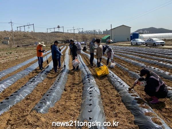 시흥시4-H지도자협의회(회장 장순천) 및 (사)한국생활개선시흥시연합회(회장 박미애)는 3월 20일 시흥시 하중동에 위치한 2,216㎡ 규모의 4-H회 공동학습포장에서 친환경 재배방법으로 감자 250Kg을 파종했다.