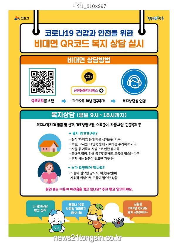 신현동 행정복지센터(동장 방효설)는 코로나19로 주민의 건강과 안전을 위해 비대면 QR코드 복지 상담을 실시해 사회적 거리두기를 적극 실천 하기로 했다.