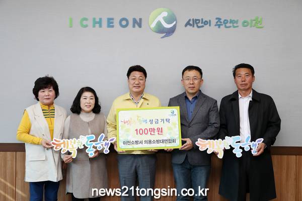 남왕우 연합회장은 “코로나19로 어려움을 겪고 있는 이천시 복지사각지대의 저소득 소외계층에게 조금이나마 도움이 되길 바라는 마음에서 회원들의 뜻을 모아 행복한 동행에 기탁하게 되었다”며 “의용소방대도 코로나19의 위기상황을 극복해 나가기 위해 함께 노력하겠다”고 말했다.