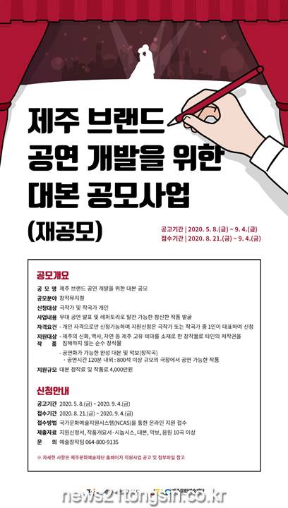 제주특별자치도는 ‘제주 브랜드 공연 개발을 위한 대본 공모사업’ 재공모를 실시한다.
