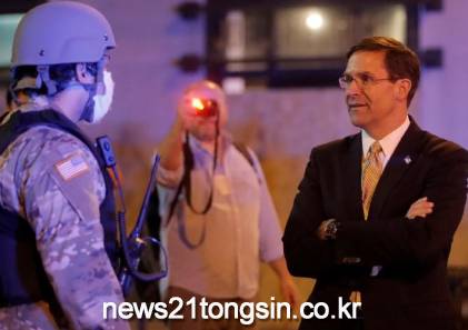 ▲ 사진=로이터통신마크 에스퍼 미국 국방장관이 3일(현지시간) "민간 시위대 진압을 위한 현역 병력의 투입은 최후의 수단"이라며 "내란법 발동을 지지하지 않는다"라고 말했다.