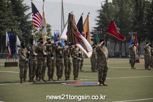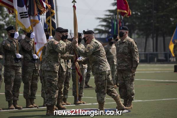 (대구=뉴스21통신) 유재원기자 = 주한미군 제19지원사령부는 이임 사령관 마크 시멀리 (Mark T. Simerly)준장과 취임 사령관 스티븐 앨런(Steven L. Allen) 준장의 이·취임식을 지난 6월9일 오전 10시 캠프워커 캘리연병장에서 거행되었다.