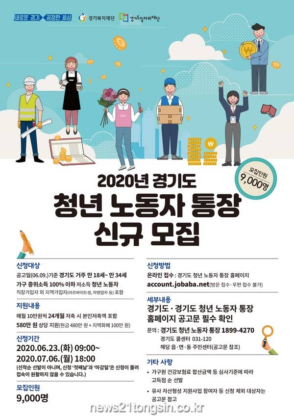 ‘경기도 청년 노동자 통장’은 청년이 매월 10만원을 저축하고 24개월 동안 근로활동을 유지할 경우, 경기도 지원금과 이자 등을 합쳐 2년 후 약 580만원의 목돈을 마련할 수 있는 청년 지원 사업이다.