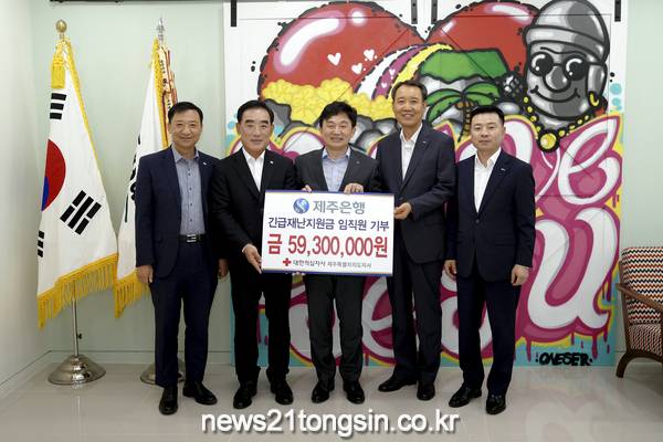 제주특별자치도는 16일 오후 5시 도지사 집무실에서 제주은행 임직원들이 십시일반으로 모은 성금 5,930만원을 전달받는다고 밝혔다.