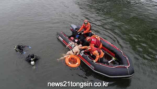 특히, 훈련 효과를 극대화하기 위해 유람선의 기관 고장으로 인한 교각 충돌 상황을 가정해 실제 수난사고 현장과 유사한 환경에서 다수의 익수자를 공중과 수중에서 탐색하고 보트 등을 이용해 신속하고 안전하게 구조하는 데 중점을 뒀다.