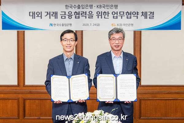 방문규 수은 행장과 허인 국민은행장은 24일 오후 수은 여의도 본점에서 만나 대외협력 강화를 위한 업무협약(MOU)을 체결했다.