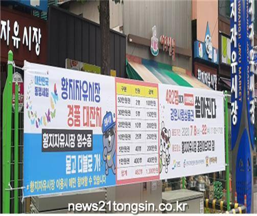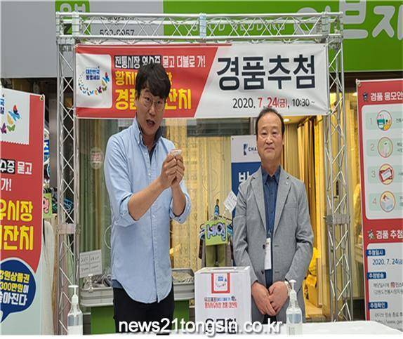지난 24일 황지자유시장에서는 강원도 전통시장과 함께하는 대한민국 동행세일 온라인 경품추첨 행사를 진행했다.